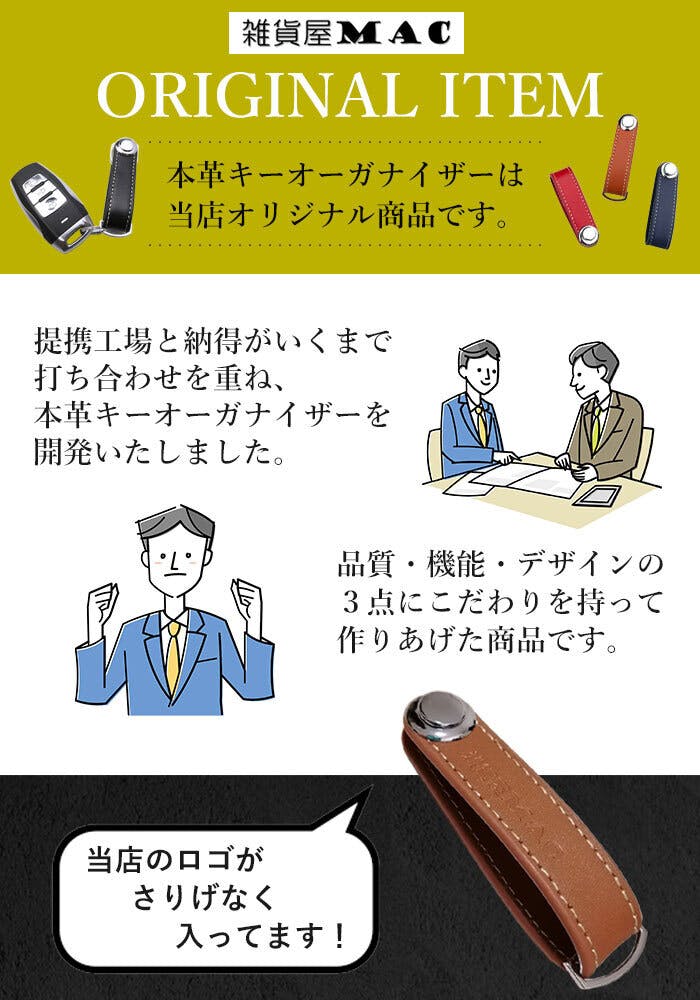 2020/12/18 17:00こんにちは、雑貨屋MAC店主の浅野です^^少しずつご支援が増えてきて、非常にうれしい限りです。今日までに、ご支援いただきました皆様には、心から感謝申し上げます。さて、リターン商品の近況報告を2点ほどさせていただきます。まず1点、今回の「キーオーガナイザー」ですが、本リリースも決まり、ご支援も増えてきたことも踏まえ、類似品との差別化を図る意味も込めて、当店のロゴをさりげなく刻印させていただくことにいたしました。完成サンプルが出来上がりましたので、画像にてご報告いたします。支援者の皆様に気に入っていただければ嬉しいですが、この先も多くの人に知ってもらってファンになってもらえるよう、私なりにフォントやバランスを考えてデザインしました。そして2点目は、サンプリング時にも、今回の支援者様にも、いただいたリクエストがありましたので、カラビナをセットでお届けすることにいたしました!!バランスも考え、サイズはやや小ぶり、両面から着けられるタイプで、鍵並びでも着けられるよう、専用の金具もセットにして据え置き価格でご提供できるよう、工場と交渉をしておりました。出来上がりの画像を併せてご報告いたします^^ご支援いただいた皆様には、こちらをお届けいたしますので、プロジェクト終了まで引き続きのご支援、拡散のご協力を、よろしくお願いいたします。こんな感じで、ベルト側でも、鍵側でも着けられますので、スマートキーがある方でも、お好みで利用していただくことができます^^雑貨屋MAC 浅野将大 もっと見る