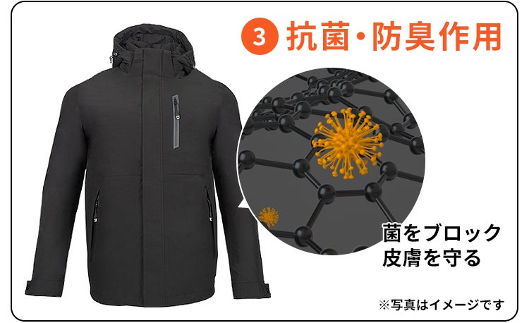 「グラフェンウォームジャケット」なら常に清潔!安心して毎日身に着けて頂けます。