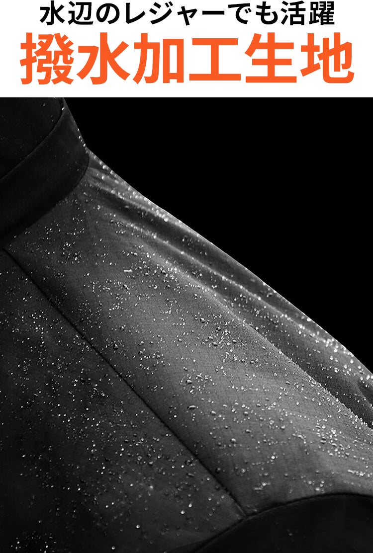 小雨程度なら十分凌げる撥水力。もちろん、雨の日だけでなく、水辺のレジャー時にも大活躍しますよ!
