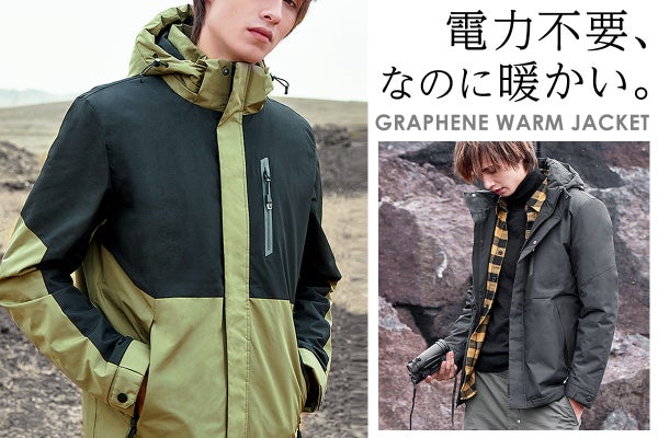 「グラフェンウォームジャケット」は、気温に合わせて着脱可能な、インナージャケットとの2枚セットになっています。
