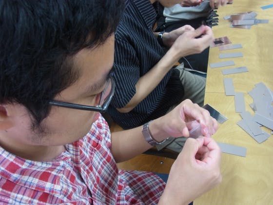 材料準備では材料を作り、すべての材料を一人分ずつの工作セットとして袋詰めをしました。当日の東工大Science Technoのブースの来場者想定数の320セットを作りました。これで、320人分の子供たちの笑顔の材料ができました!
