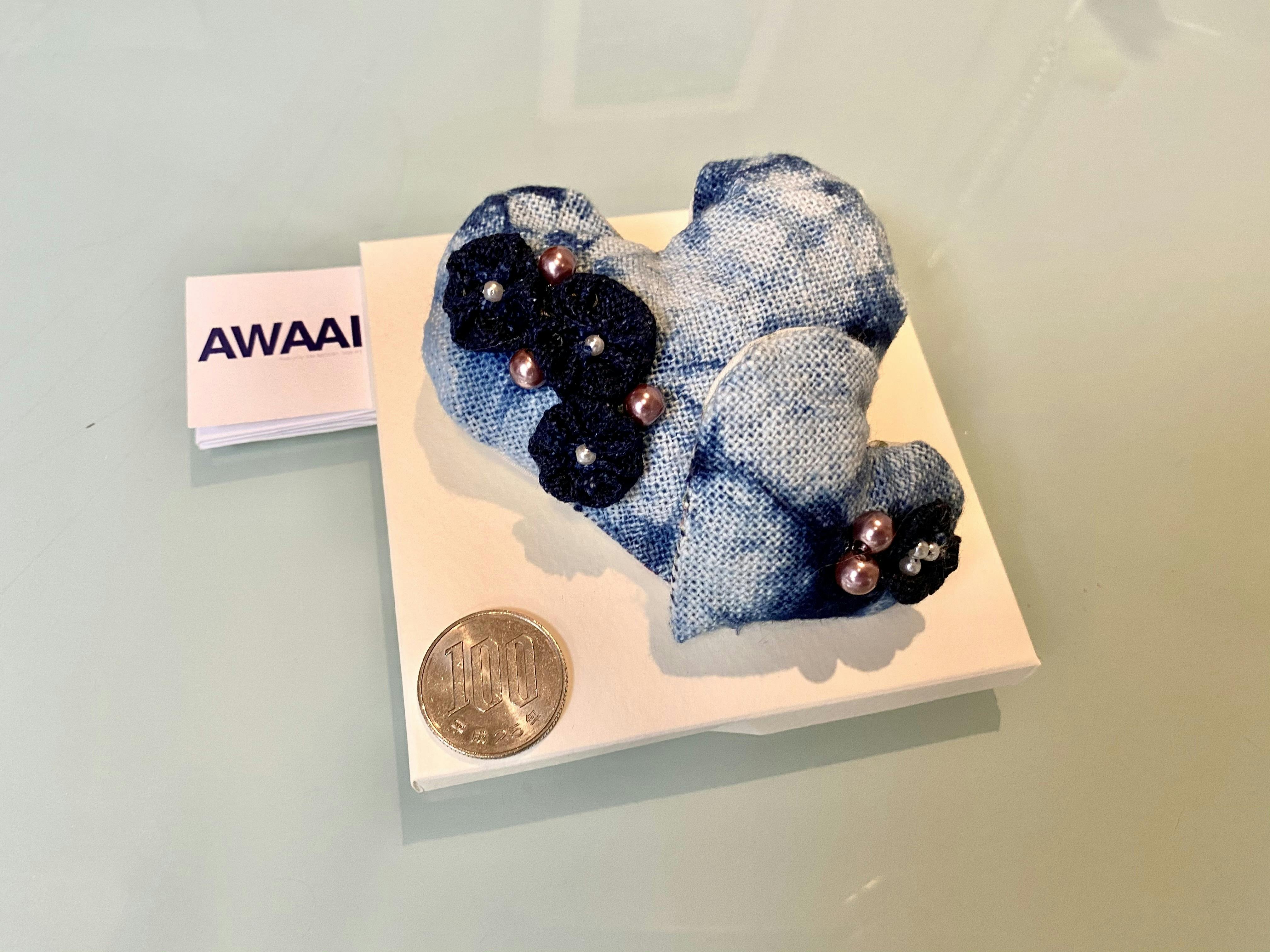 ※ブローチ・ストール共に一点もの、または藍染の染め方などによりデザインや柄がすべて違います。ご了承ください。