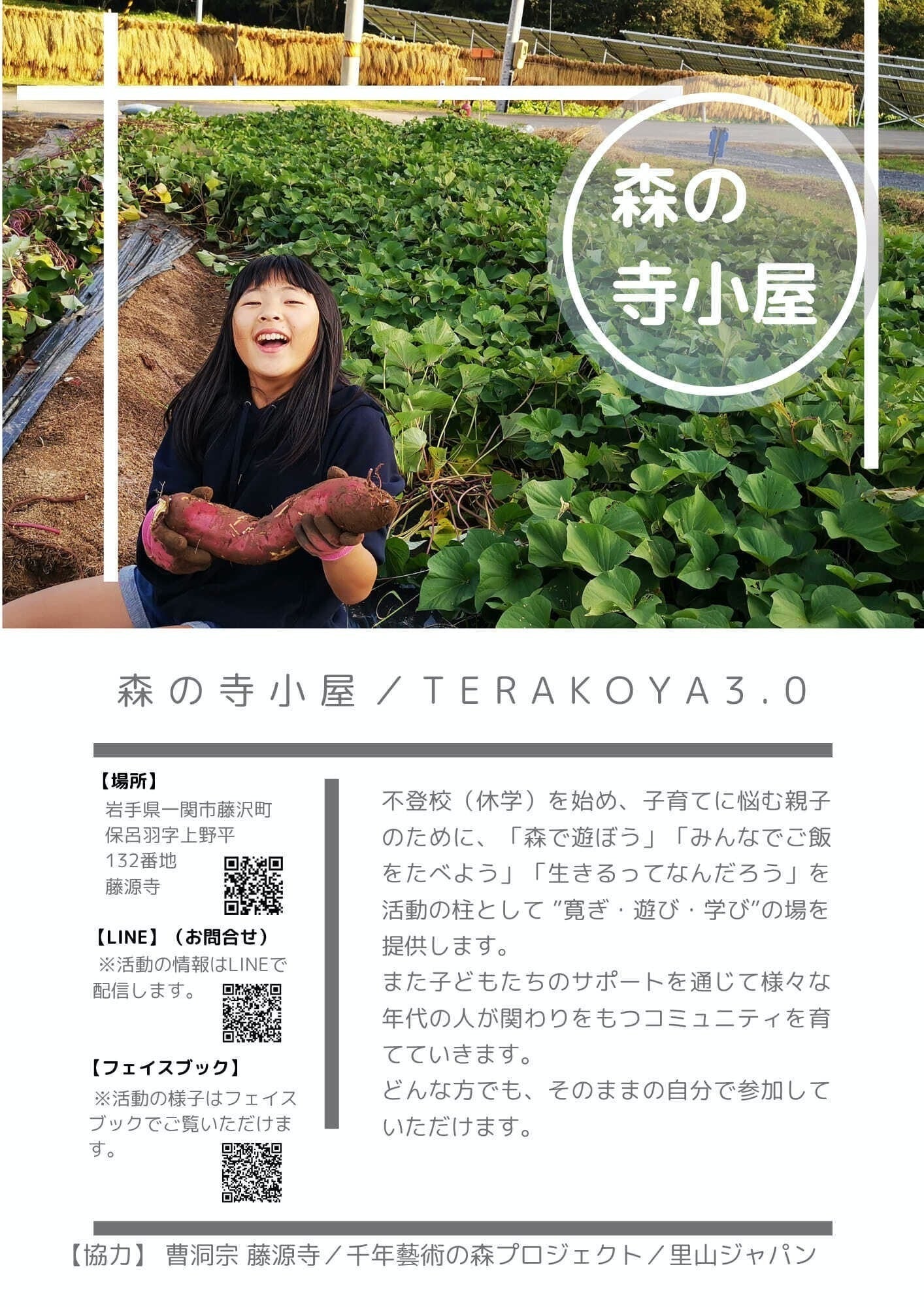 岩手県一関市藤沢町の森の中で「森の寺小屋」という活動をしている佐藤です。 私自身の小学生の双子の娘が不登校になったのをきっかけに、主に不登校児とその保護者のための”居場所づくり”を、森の中のお寺の境内を利用して行なっています。