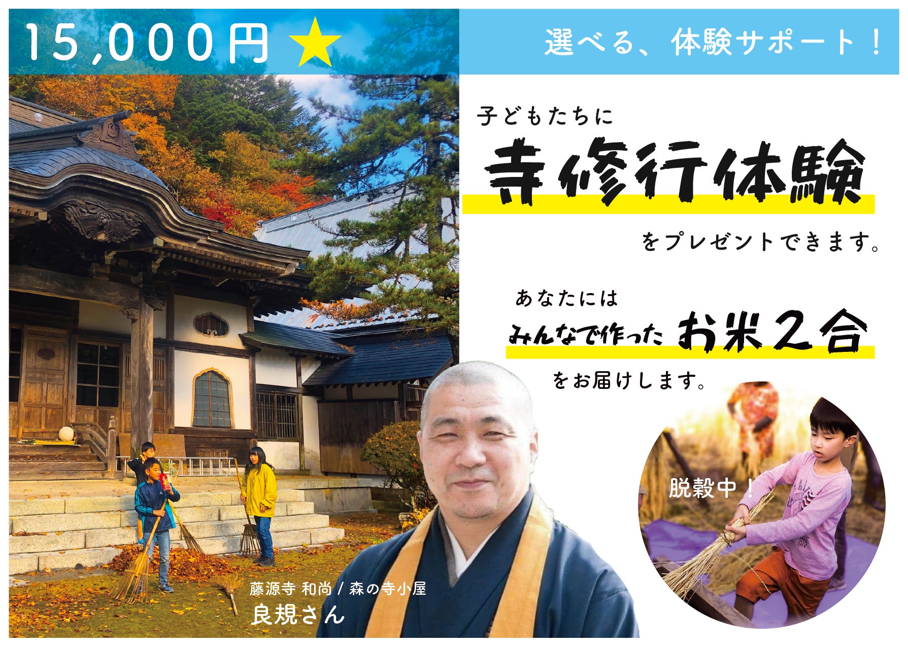 「森の寺小屋」のリターンは、沿岸部に住む子どもたちに森の楽しさや豊かさを体験してもらいつつ、禅寺の”修行体験”(境内のお掃除や坐禅など)で、暮らしの中にある日本の文化や智慧を体験してもらいます。