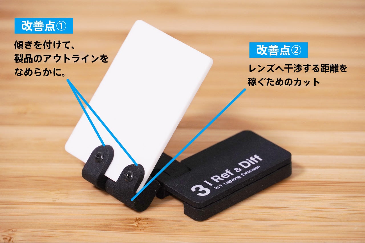 レフ板となる白いプレートを挟んでいる部分のエッジに傾きを付けて、外観を良くしました。