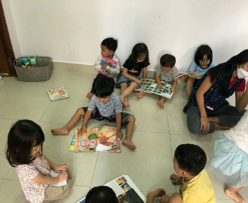 日本では、絵本の読み聞かせが幼児教育に浸透していますが、カンボジアにはその文化が浸透していないように感じます。そのため絵本は小学生で字が読めるようになって自ら読むという印象があります。
