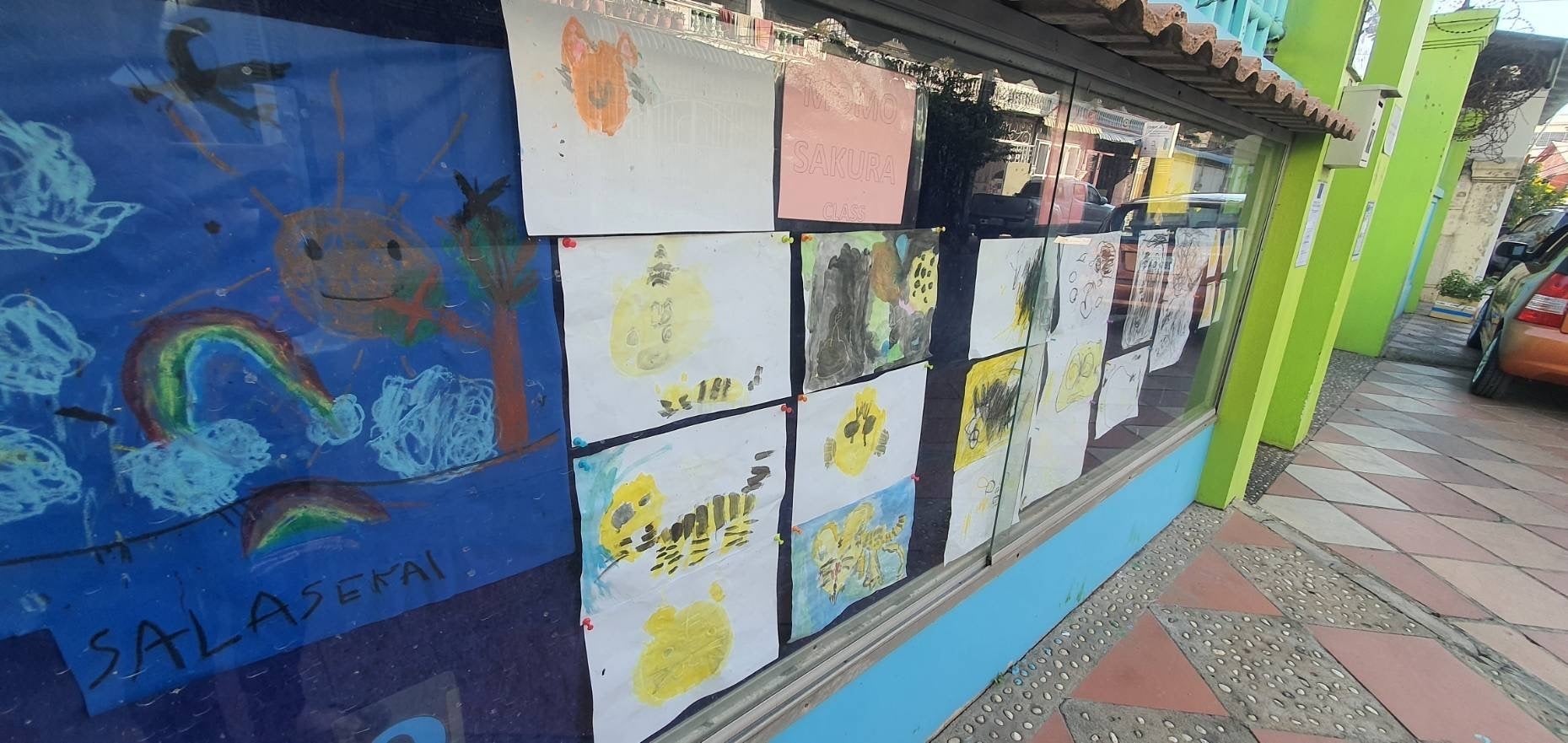 保育園の門に飾ってある絵