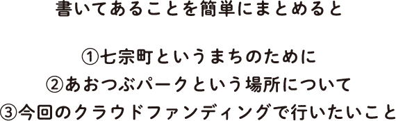 私が自分で描いてみた、「あおつぶパーク」の構想です。