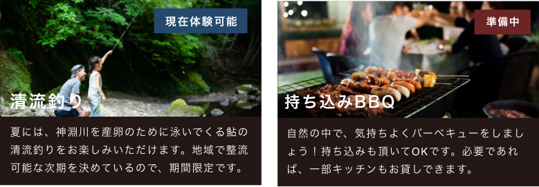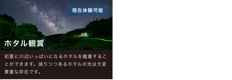 初夏の神淵川いっぱいのホタルや、秋から冬にかけての澄んだ空気の中で鑑賞する月と星、そして山に囲まれた大自然。