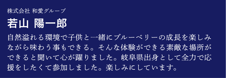 ここで誓った思いを、また三年後に・・・とは言わず、来年も、再来年も。実家に帰るような感覚で、自分の植えたブルーベリー成長を見に来てほしいと思っています。