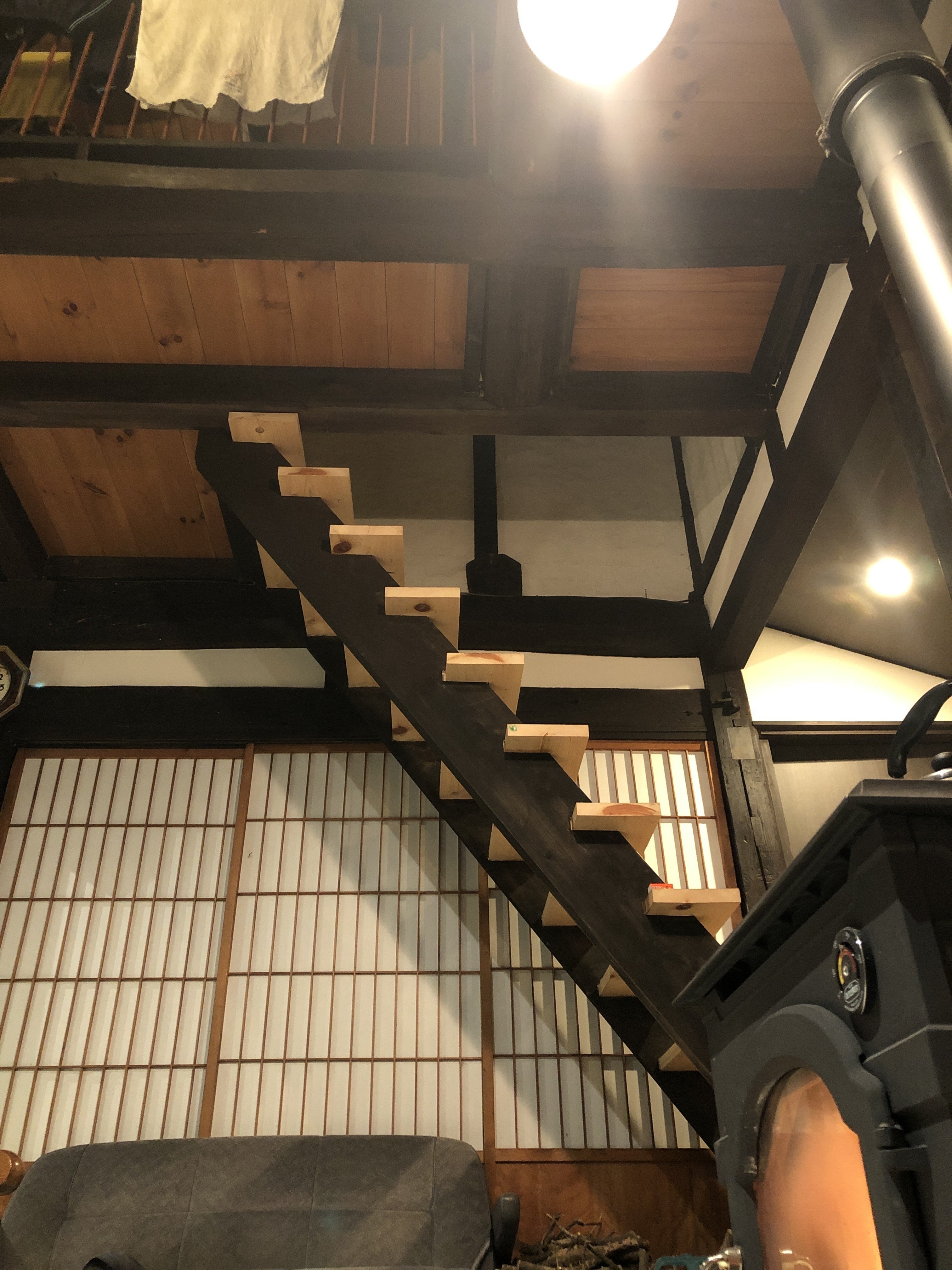 農園の中の私たちの自宅です。築100 年の古民家なので大きな吹き抜けがあります。暖炉が活躍する時期になってきました明日朝は雪景色ですね暖炉はすごく室内が乾燥するので洗濯干しは一石二鳥ですww