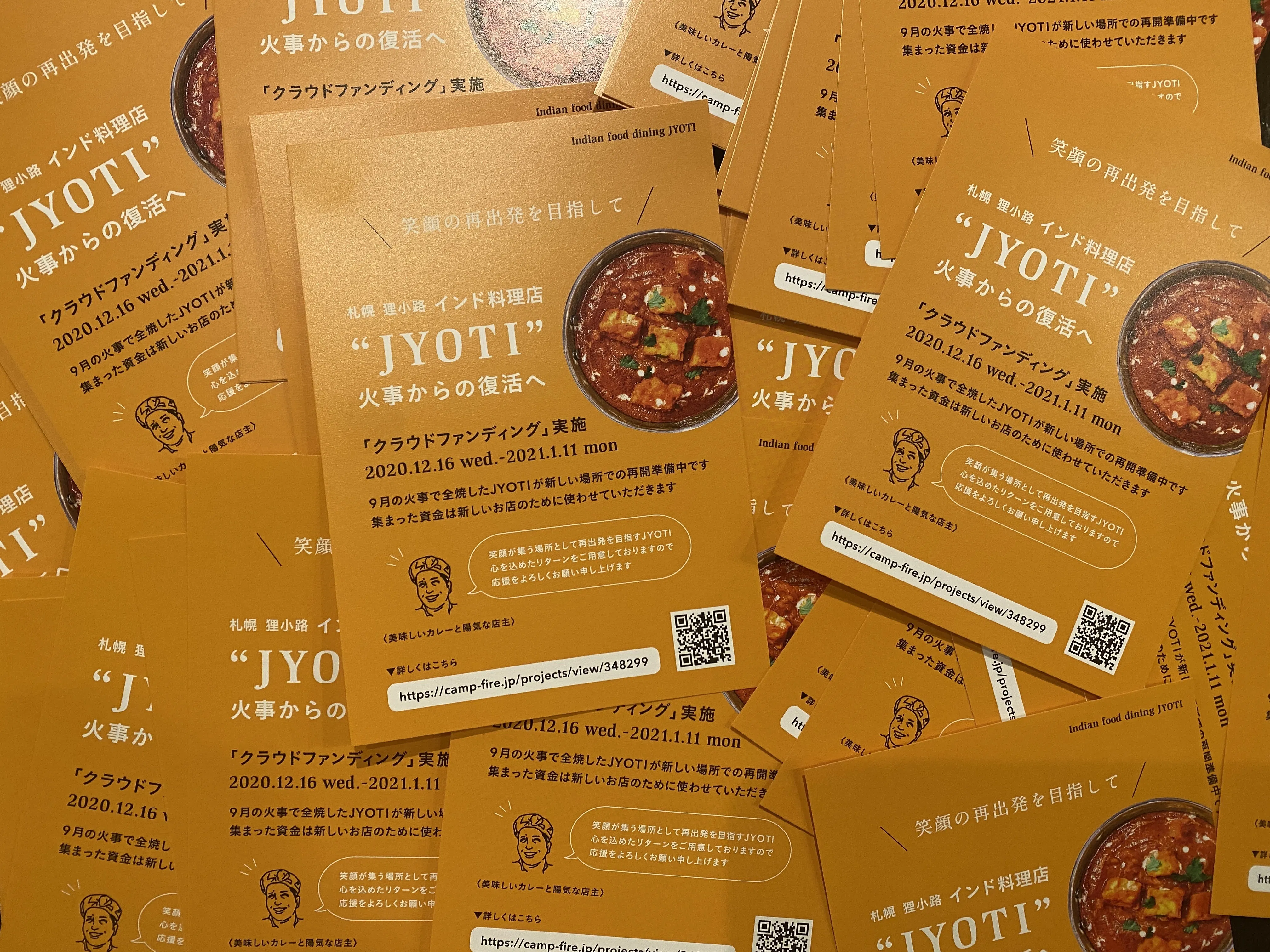 皆さまには、ジョーティ復活のクラウドファンディングで本当にお世話になりました。ありがとうございました。その後もご来店いただいた際に励ましてくださったり、あたたかいメッセージを寄せてくださったり、ずっと支えていただいております。心より感謝申し上げます。