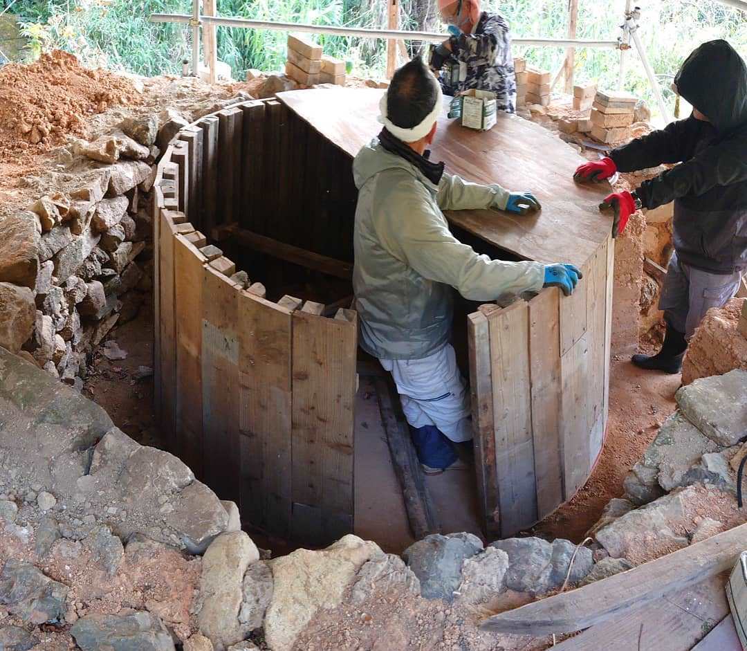 産業振興の一環で炭窯作りに取り組む様子(沖の島集落活動センター妹背家)