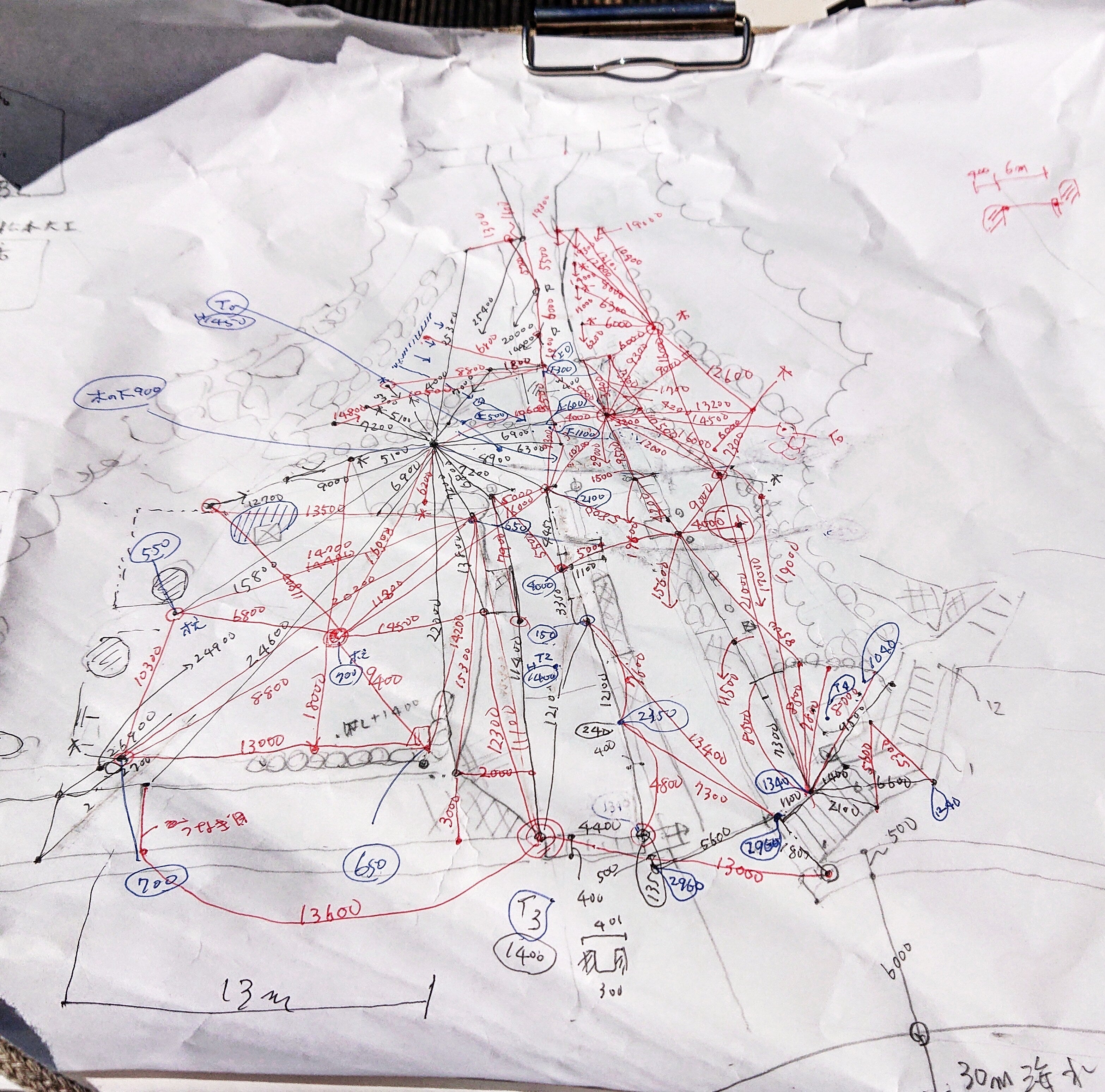製塩施設建築予定地の測量ラフ図