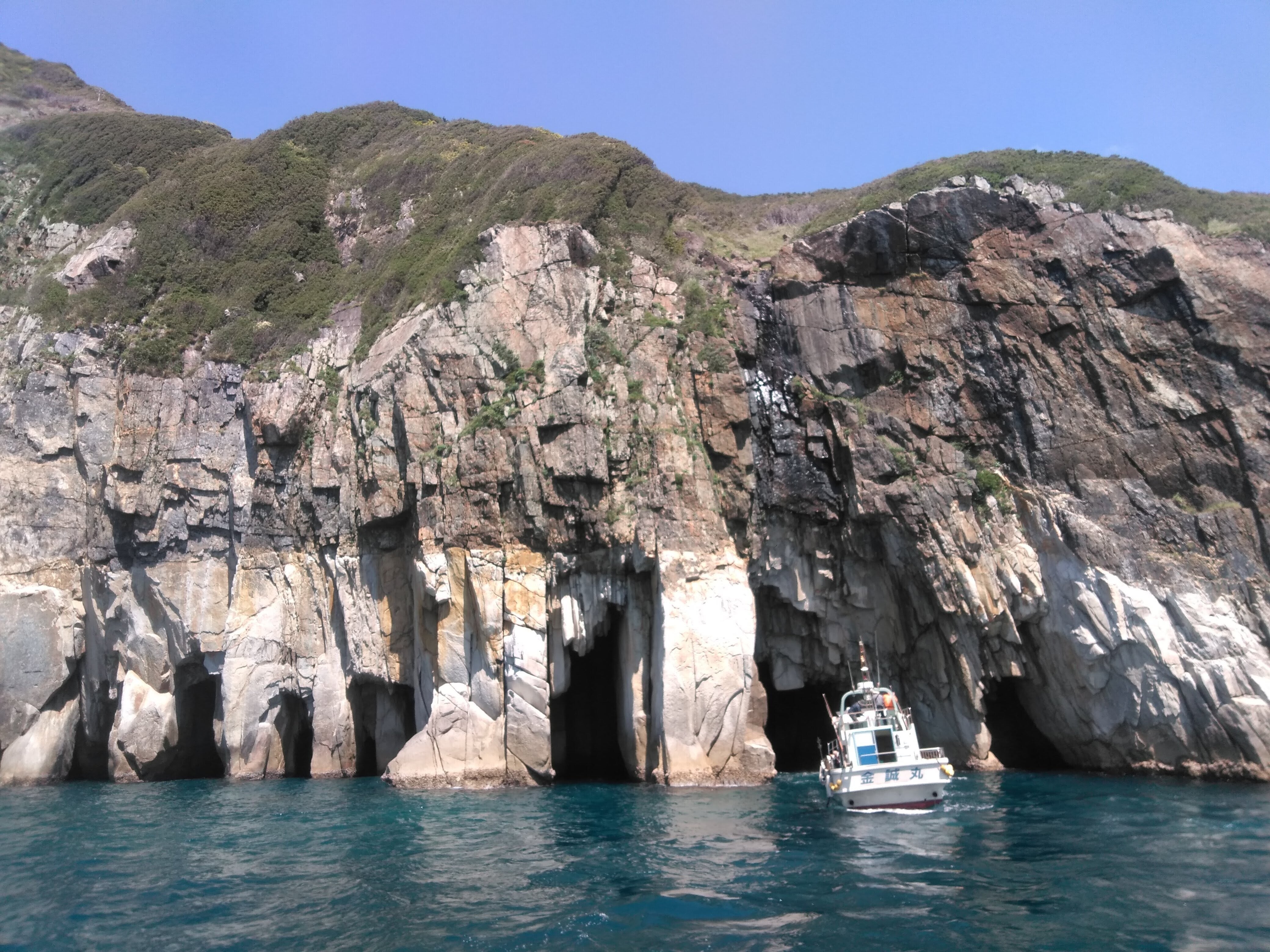 沖の島の名所の七ツ洞 クルージング