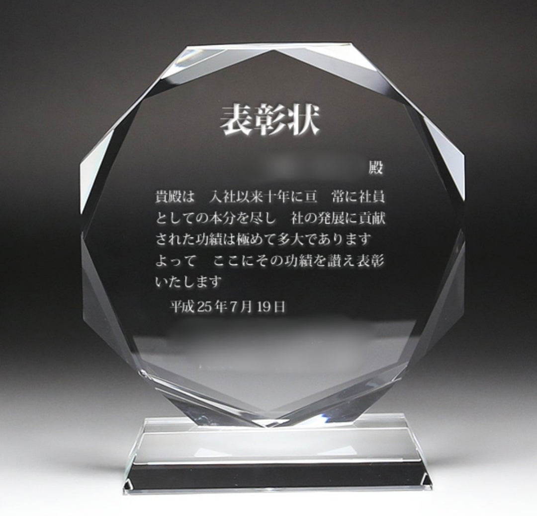 ※写真はイメージ図です。写真とは彫刻文章が変わります。ご支援時に備考欄に必ずご希望のお名前をご記入ください。そのお名前を彫刻することになります。又、クリスタル盾の形状が変更になる可能性があります。予めご了承ください。