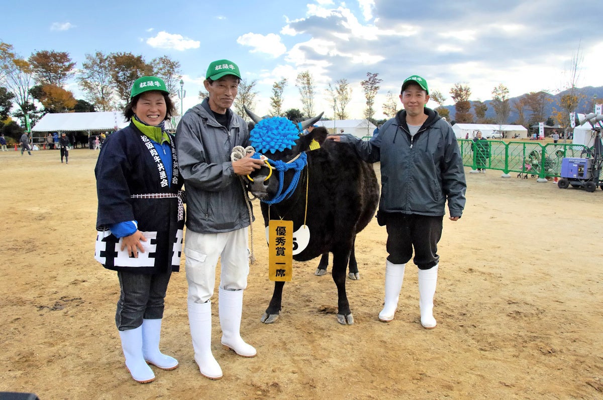 手塩にかけて育てた牛たちの晴れ舞台が、年に1度の「肉牛共進会」です。共進会を簡単に言うと牛の品評会で、その年の優秀賞を決めます。共進会と同時にセリも行われ、最優秀賞の牛には2500万円以上の値がつくこともあります。
