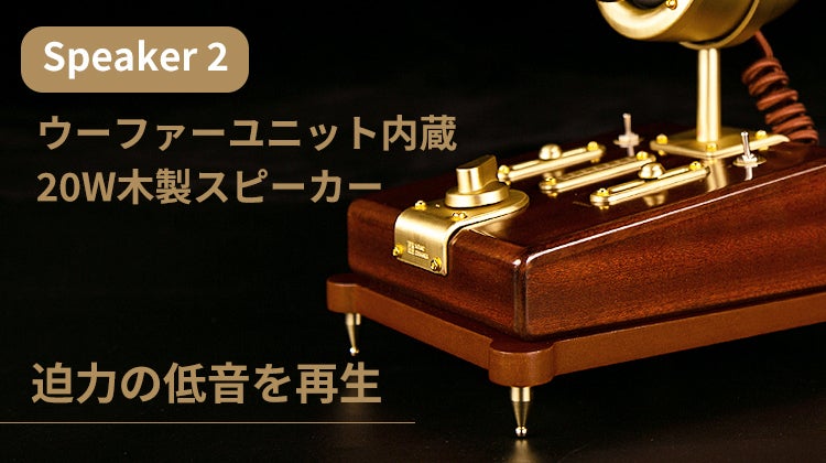●迫力の低音を再生!ウーファーユニット内蔵20W木製スピーカー