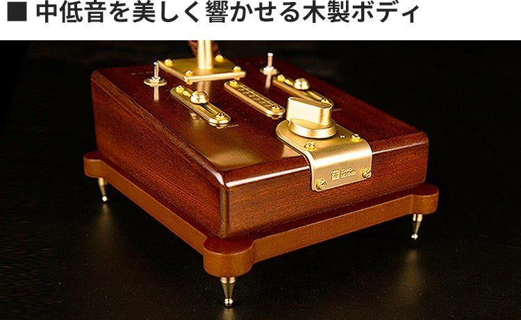 ボディとスタンドには、木材を採用。中低音の重厚感、粒感が増し、音を美しく響かせます。