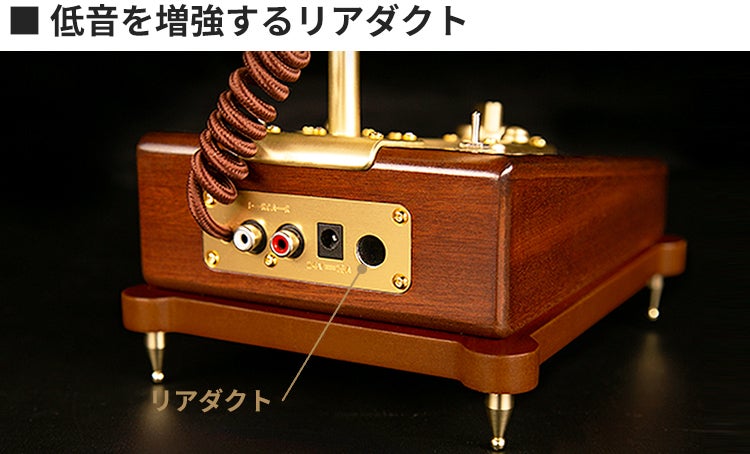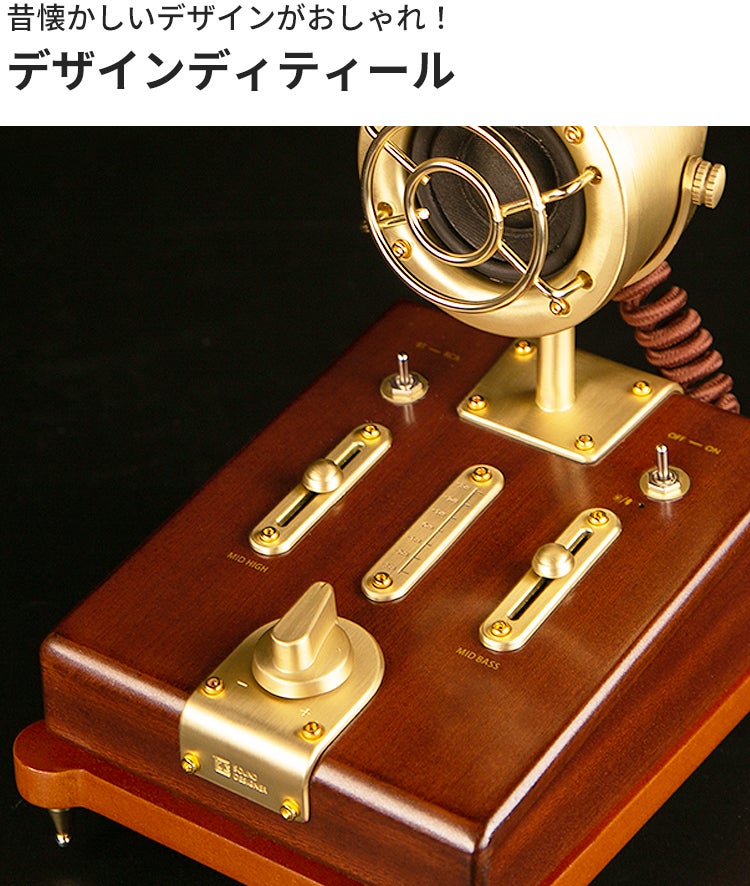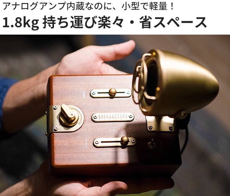 内蔵のアナログパワーアンプが生み出す、温かみのある大音量が魅力。シリーズの特長でもあるレトロなデザイン、シンプルな操作方法も健在。