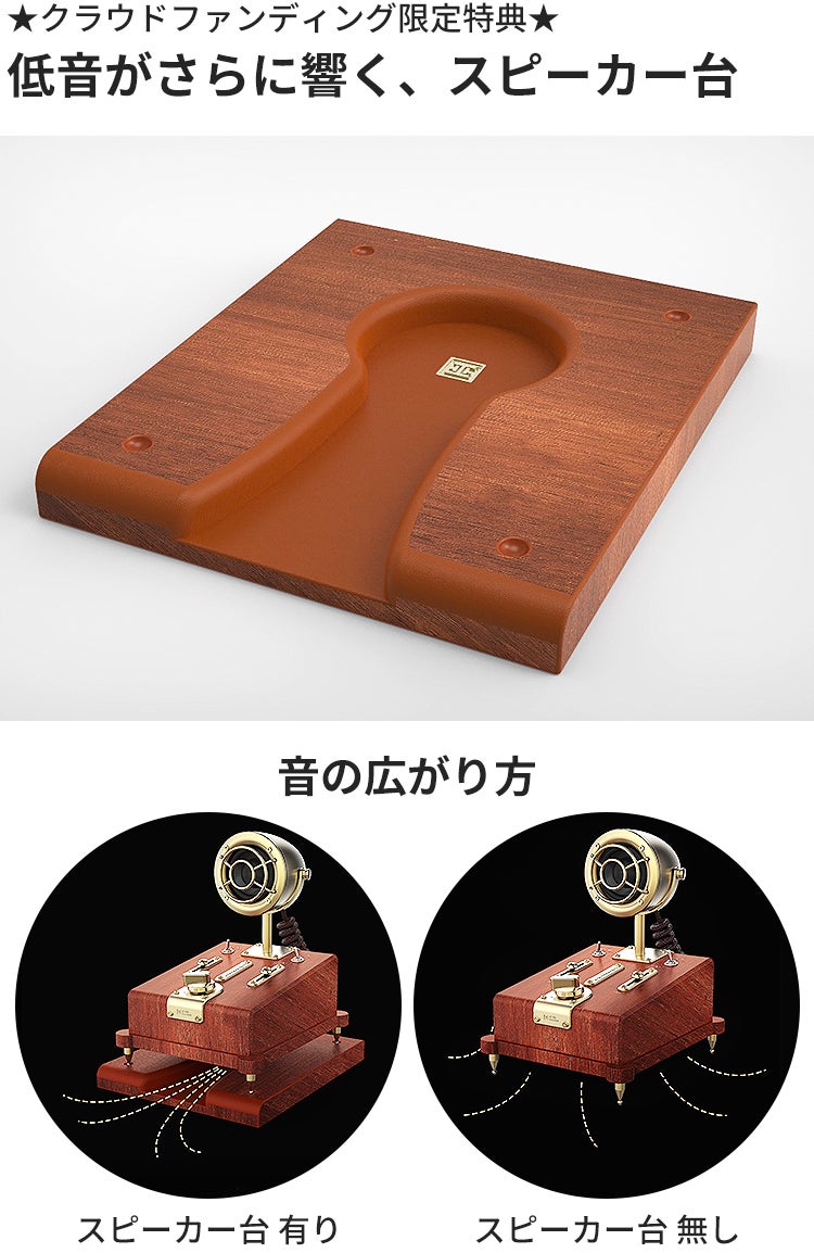 今回、クラウドファンディング限定特典として、専用のスピーカー台をセットでお送りいたします!!!