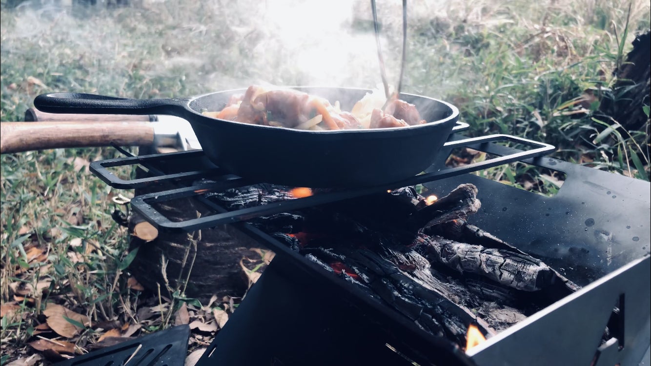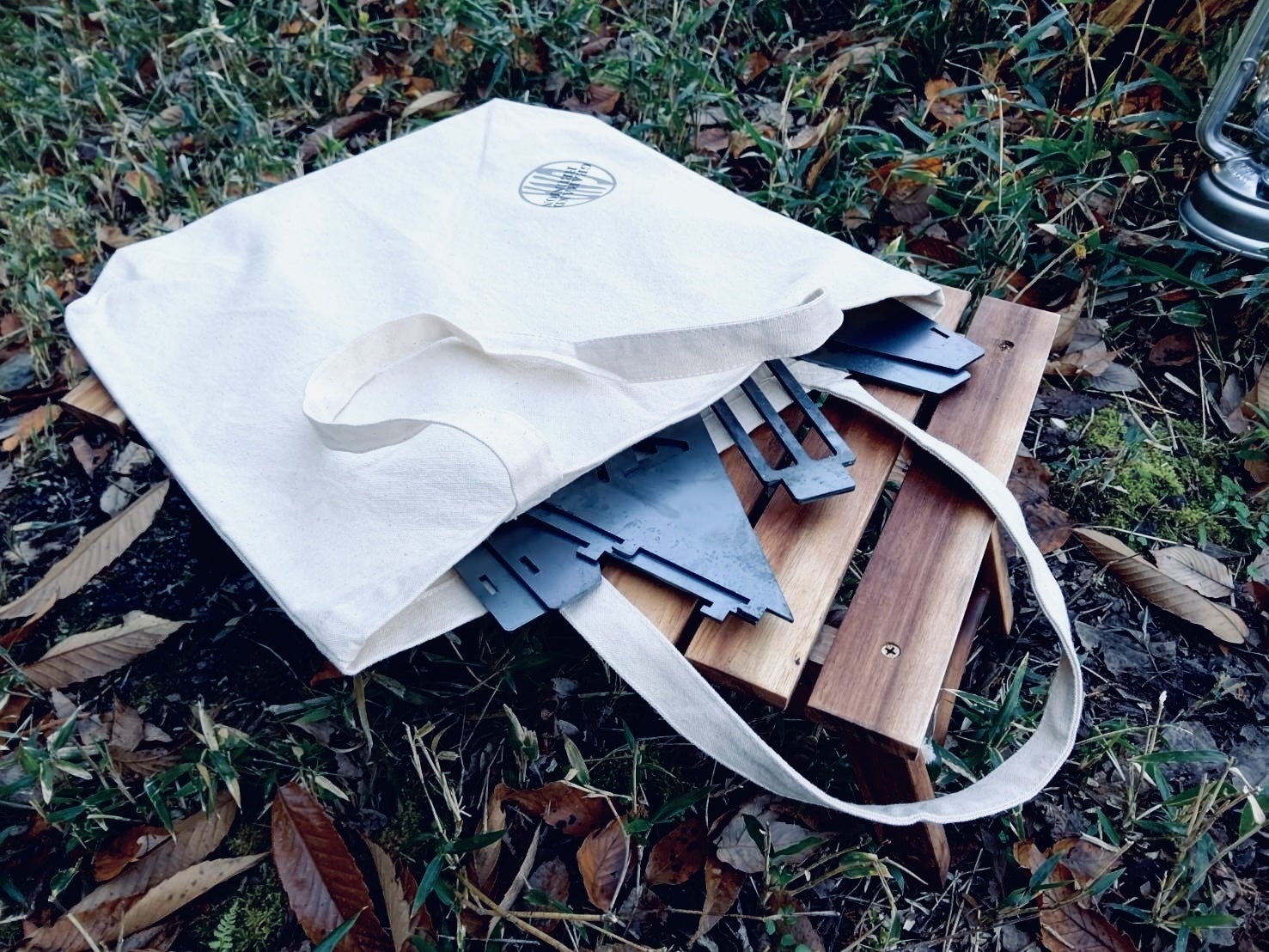 それによって従来の焚き火台と比べて軽量化がなされ、3kg程におさめることができました。