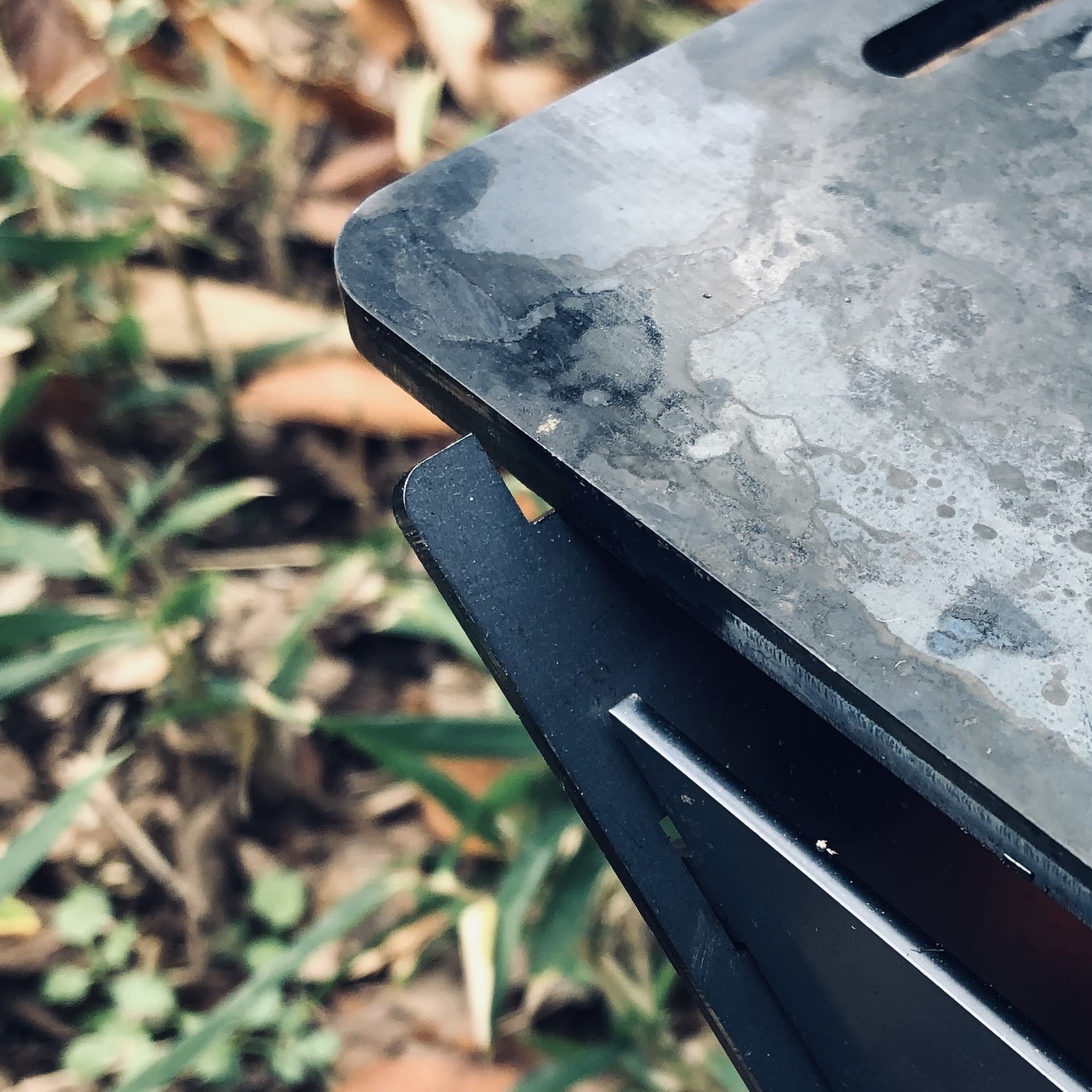 「Bonfire with GNR」の四方は少し出っぱったような形状になっており、このわずか数ミリのギミックが従来の焚き火台と差別化を図る重要なファクターの一つになっています。