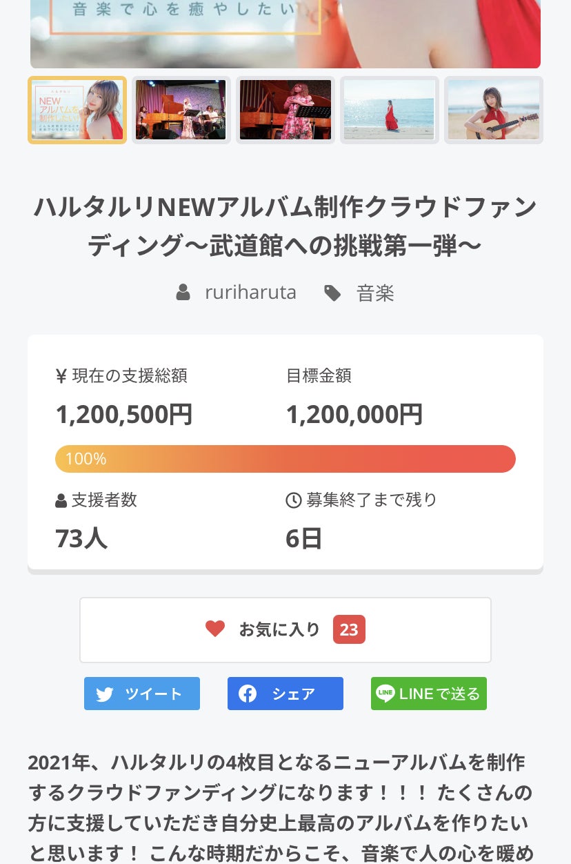 どこまでいけるか分かりませんが、引き続きのこり6日、キャンペーンの応援、盛り上げ、よろしくお願いいたします☆