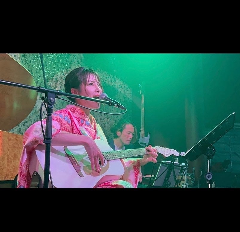 着物をきて、ギターに挑戦!!!ということでバンドに混ざってのギター演奏して歌いました!!