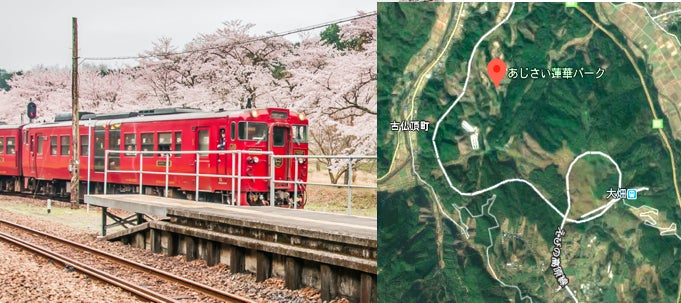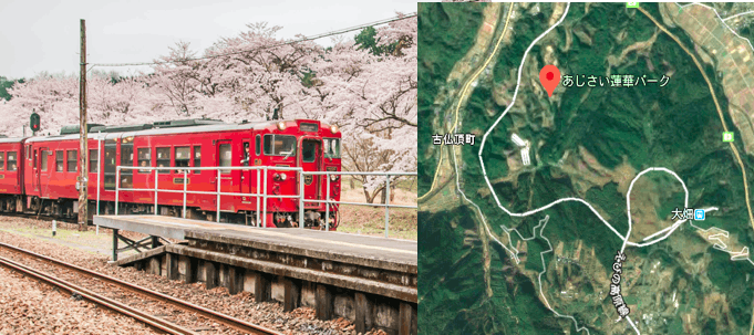 あじさい蓮華パークは、中心部から少し離れた自然の中にあります。近くにはJR肥薩線の大畑駅があり、車両が山越えをするためのスイッチバックとループが併用された珍しい路線を見るスポットも人気です。(豪雨災害後運行休止中)