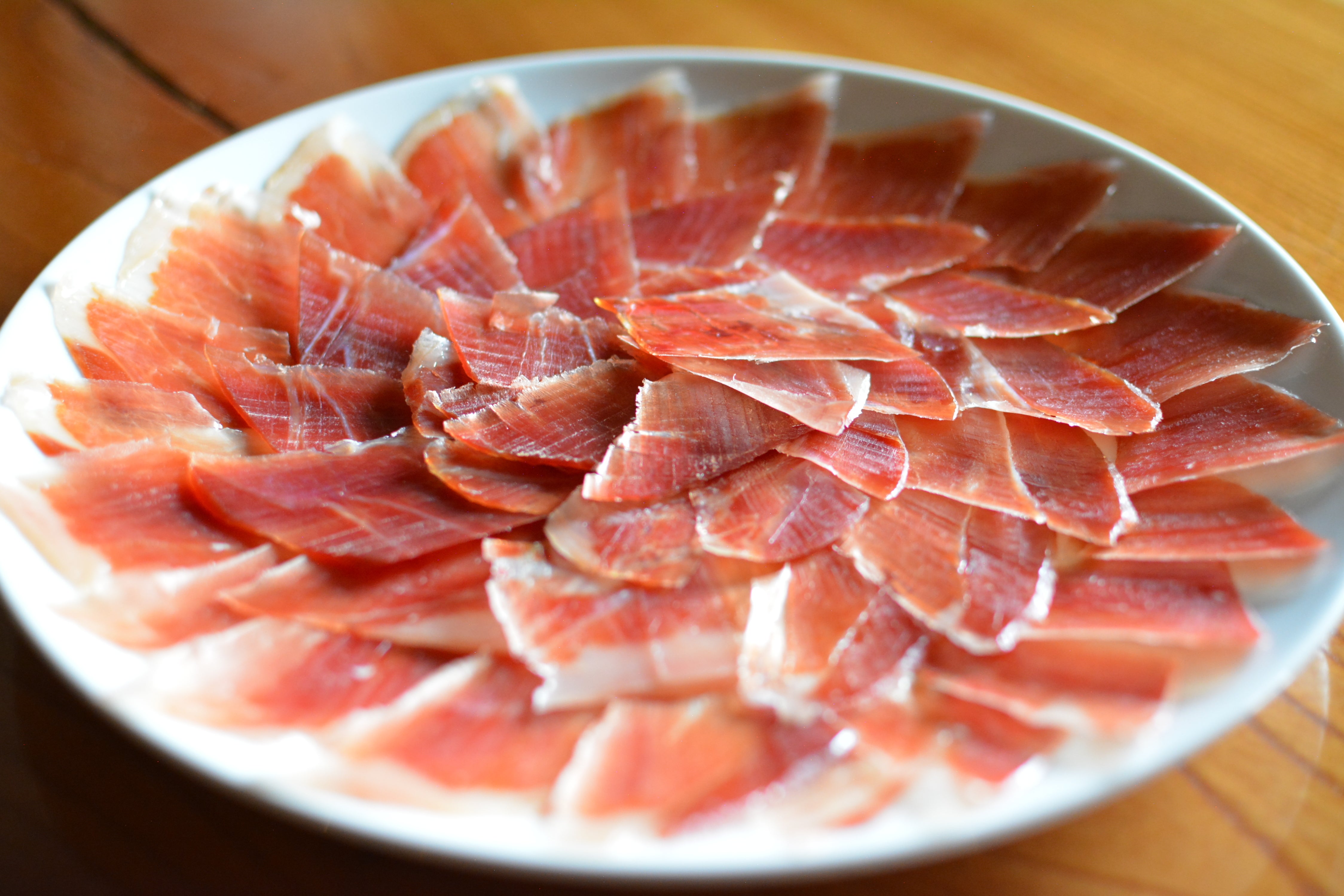 イタリアのプロシュートと似ていますが、プロシュートが比較的さっぱりと甘みのある味わいなのに対し、スペインの生ハムは熟成期間がより長く、どこか重厚で奥深い香りと味わいが特徴です。