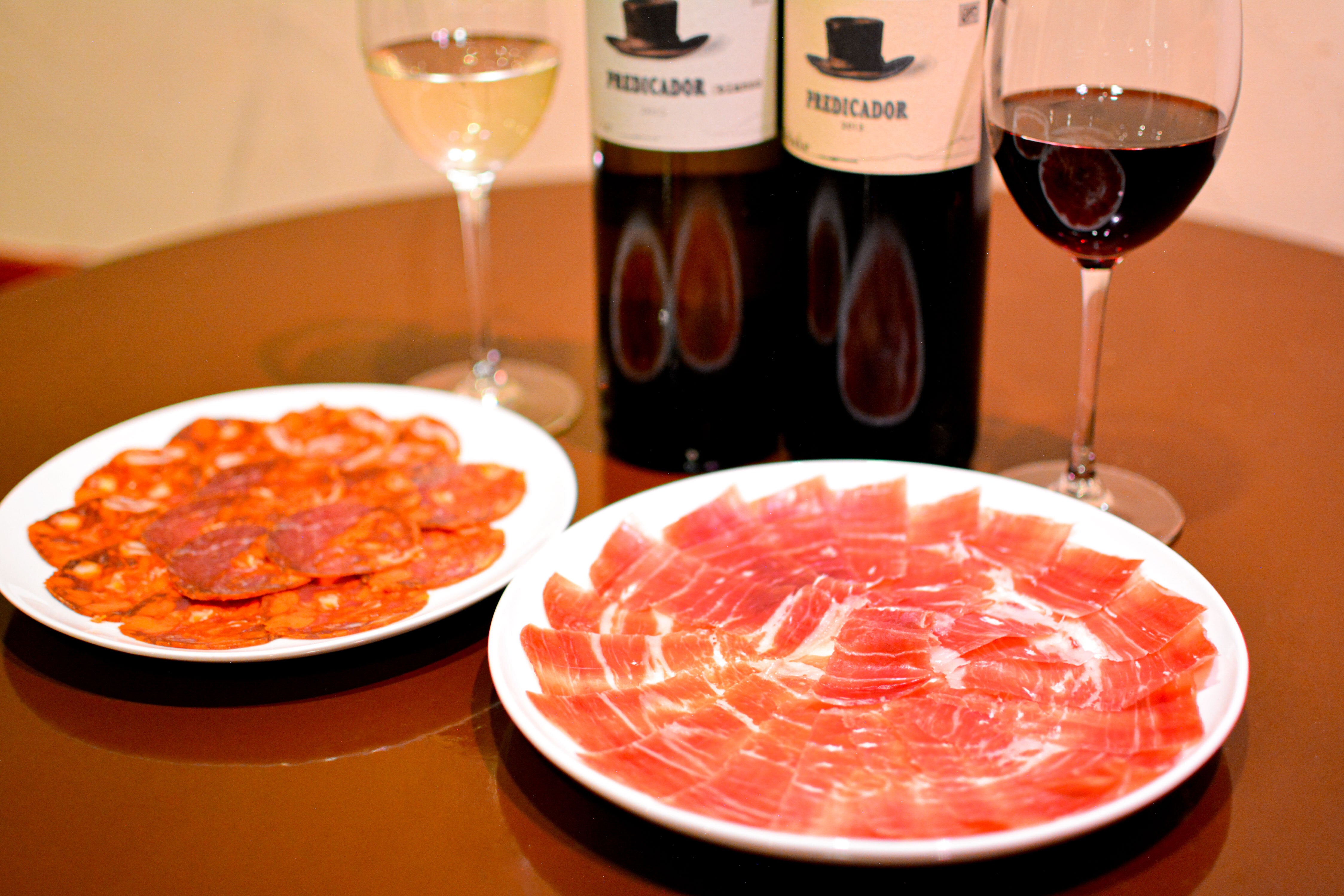 ・13,000円・・・ハモン・セラーノ 50g + スペイン産チョリソー 50g + プレディカドール・ブランコ(白) 1本 + プレディカドール・ティント(赤) 1本