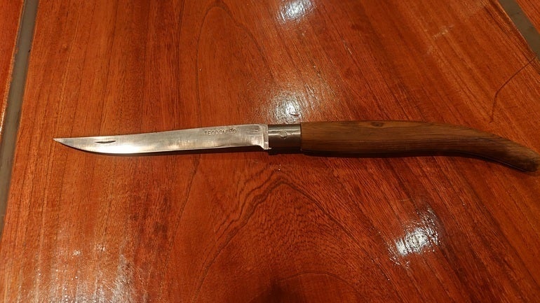 今回紹介するのは、携帯用の生ハムカットナイフです。こちらも友人のスペイン人に頂いたものですが、その方の出身地で作られている物なのだとか。いろいろなナイフを持っているという話をしたときに、次回来るときにお土産で持ってくるよと言って一年後に買ってきてくれたのでした!!ありがたや。そして、このように折りたたみ式になっており、コンパクトに持ち運べるようになっています。出張の際には専用のケースを使い仕事用のものを一式持ってゆくので実際に使う機会はあまりありませんが、キャンプなどの際にも重宝するのではないかと思われます。キャンプなどで使った際の様子もアップできたらいいなと、、、画像を取り忘れないようにしないと。