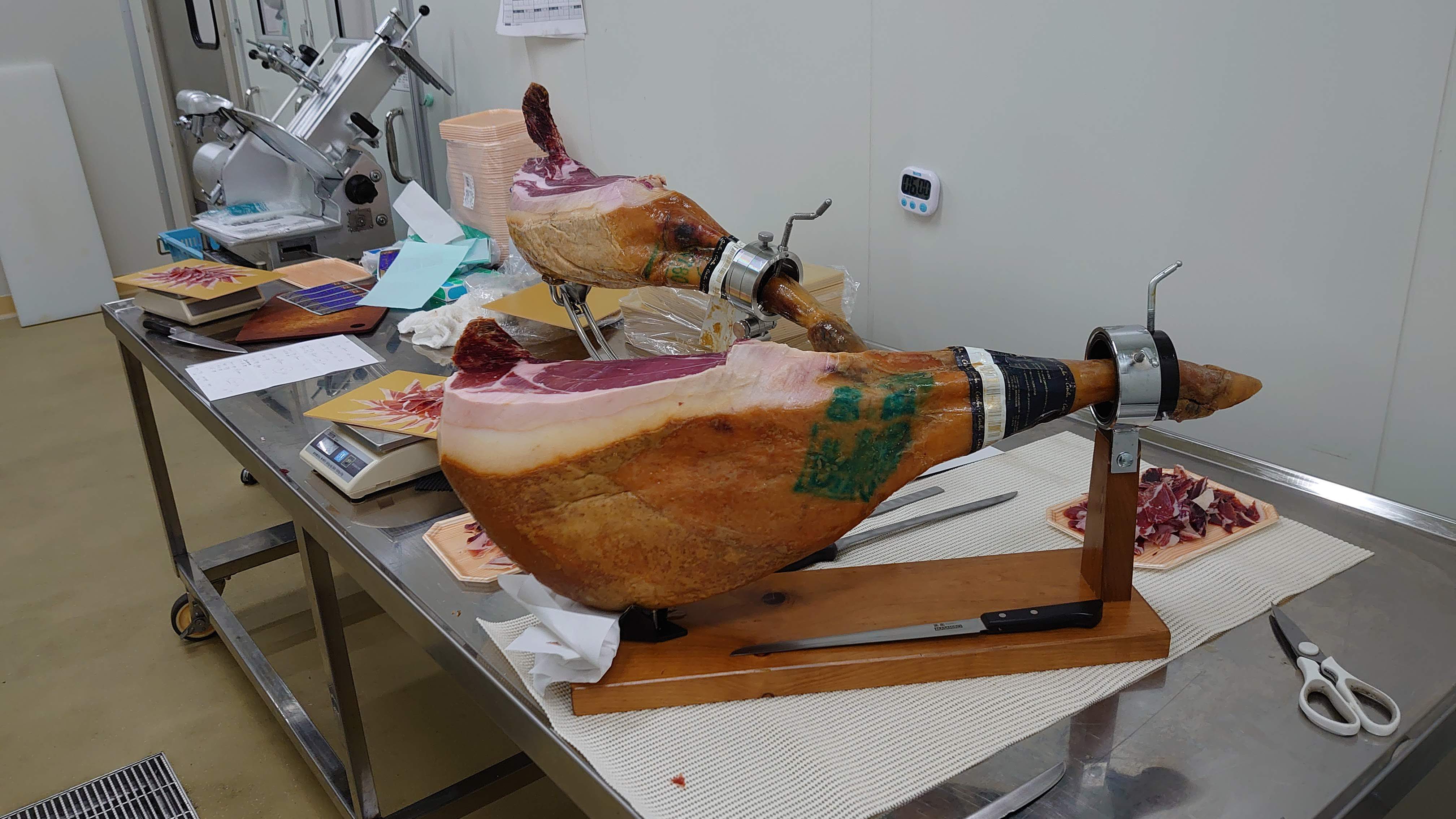 今回のプロジェクトのリターン商品を、日光のグルメミートワールドさんに伺い作成してきました。ご用意いただいたハム、セラーノとイベリコ共に非常に状態がよく美味しさにご満足いただけること間違いないかと思います。こちらはセラーノの一つですが、うまみ成分の結晶も沢山見られ、ちょっと味見しただけでも大満足!!また、今回カットにあたり新作の生ハム用ナイフを試させて頂きました。スペインでポピュラーなナイフに比べ、刃の部分がしっかりしており、普段自分の愛用するナイフに感じが似ています。刃の厚さや長さ、握りの部分等細部にこだわって作られています。ご興味のある方はこちらよりチェックしてみてください。では、お申込みいただきました皆様美味しいハムの到着を楽しみにしていてください。