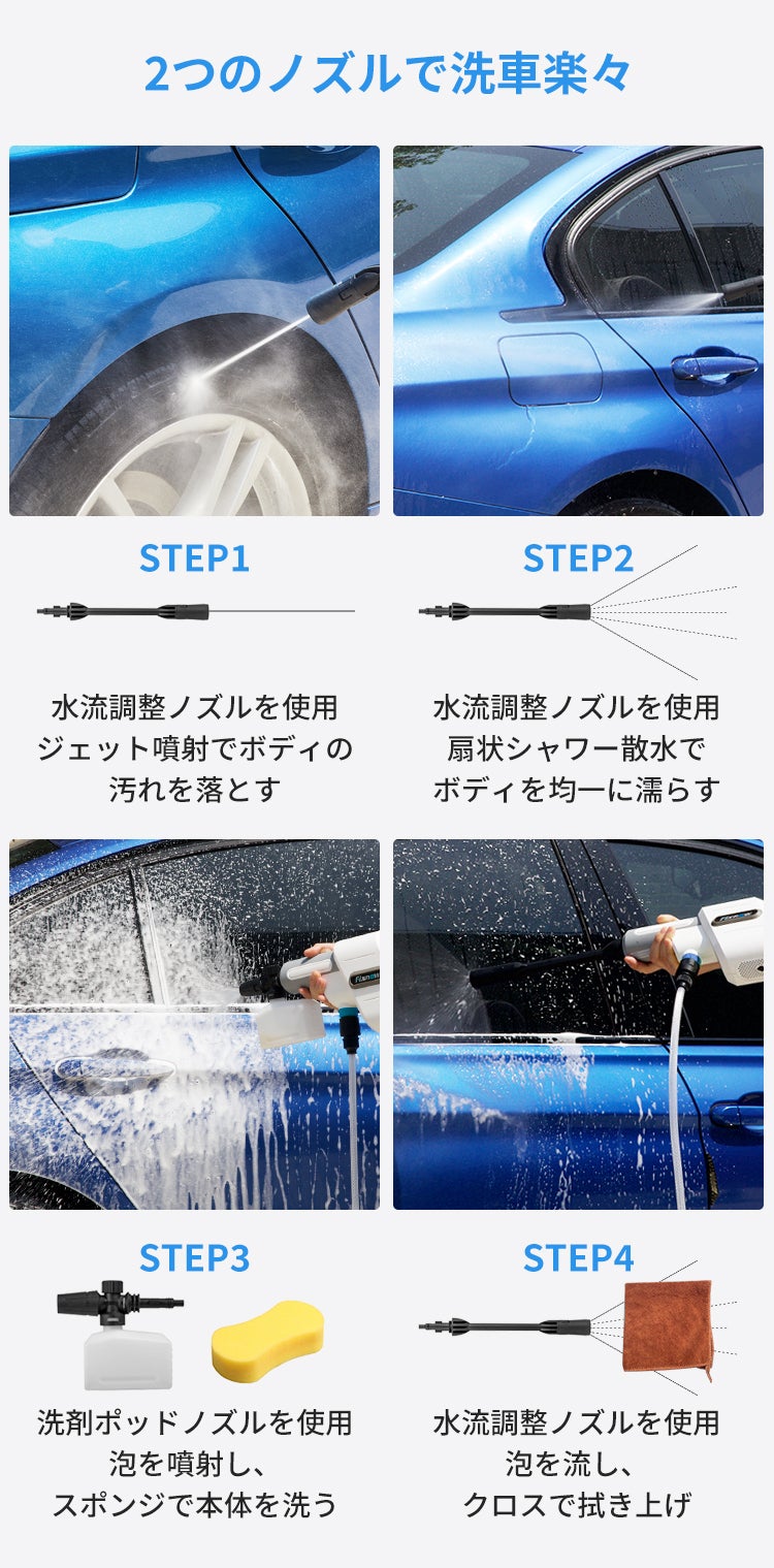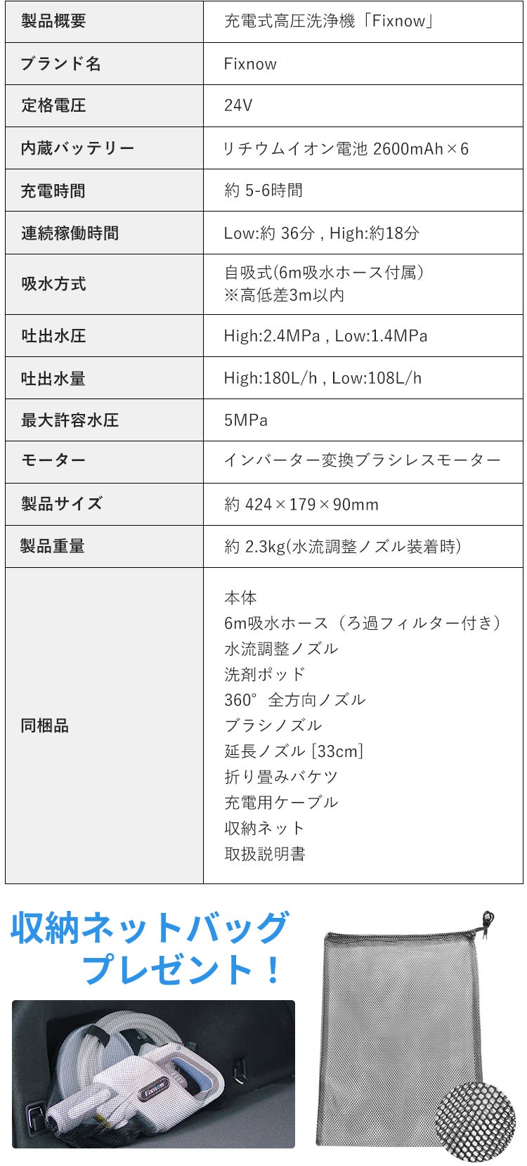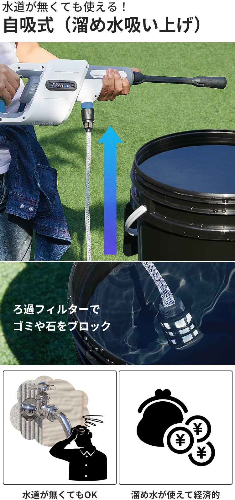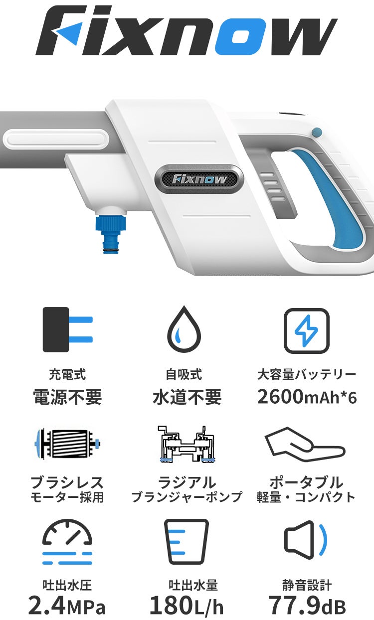 便利な充電式&自吸式で、ご自宅や広場が洗車場に早変わり!「Fixnow」でより充実したカーライフをお楽しみください!