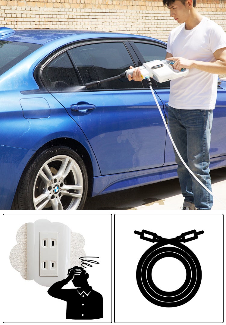 電源式でも延長ケーブルを使えば問題無いでしょうか?けれど、長い電源コードは、引っかかったり絡まったり、スムーズな移動の妨げになったりと、洗車時のストレスの原因になることも。さらに、通常のケーブルではなく、防水ケーブルが必要になるのもネック。