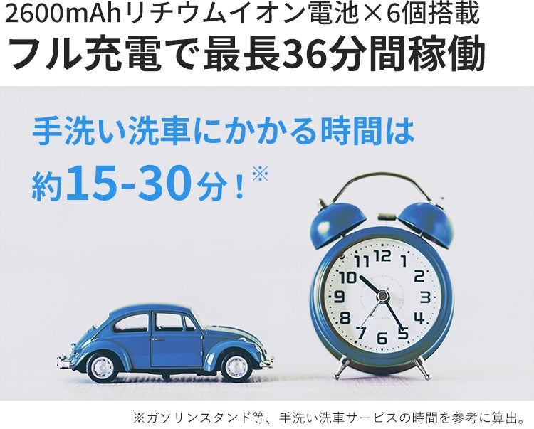 洗車にどのくらい時間をかけますか?充電式を選ぶ場合、稼働時間のチェックは重要です。稼働時間が短すぎると、洗車の途中でバッテリーが切れてしまった…なんてことになりかねません。