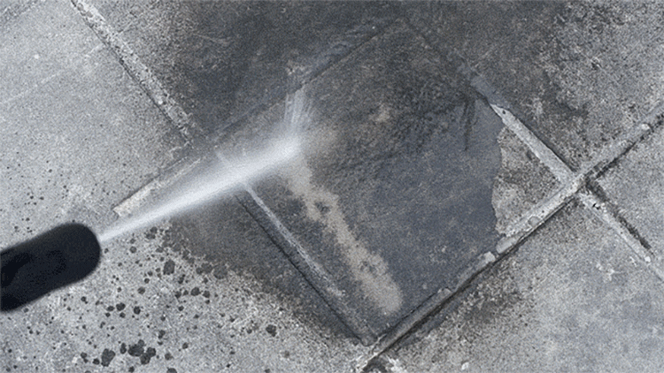 ▲Highモードなら、地面の頑固な泥汚れや、壁の隙間の落としにくい汚れも楽々!