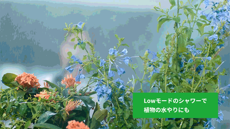▲ ガーデニングでも活躍。低水圧のシャワーで、植物の水やり。