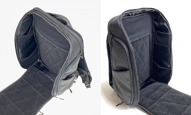 壁面素材には高圧縮発泡素材を用いており、バックパックが空の状態でも形状を保持する設計です。