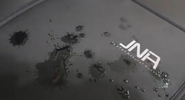 表面には防水性のコーティングを施しています。水を弾くので屋外で急な雨に降られても大丈夫です。