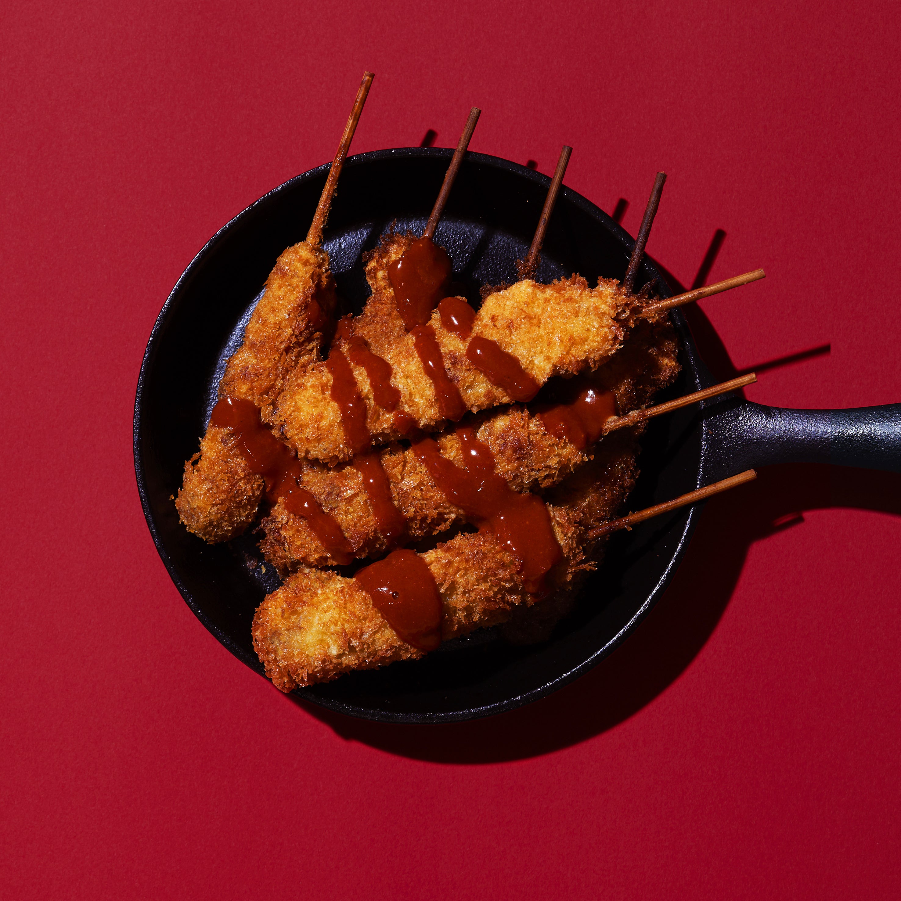 第三位・・・串カツ!普通のウスターソースもおいしいけれど、ワンランク上の串カツを味わってみてほしい!ザックザクの衣に絡みついたマスカラスが、具材の魅力を一気に引き出します!