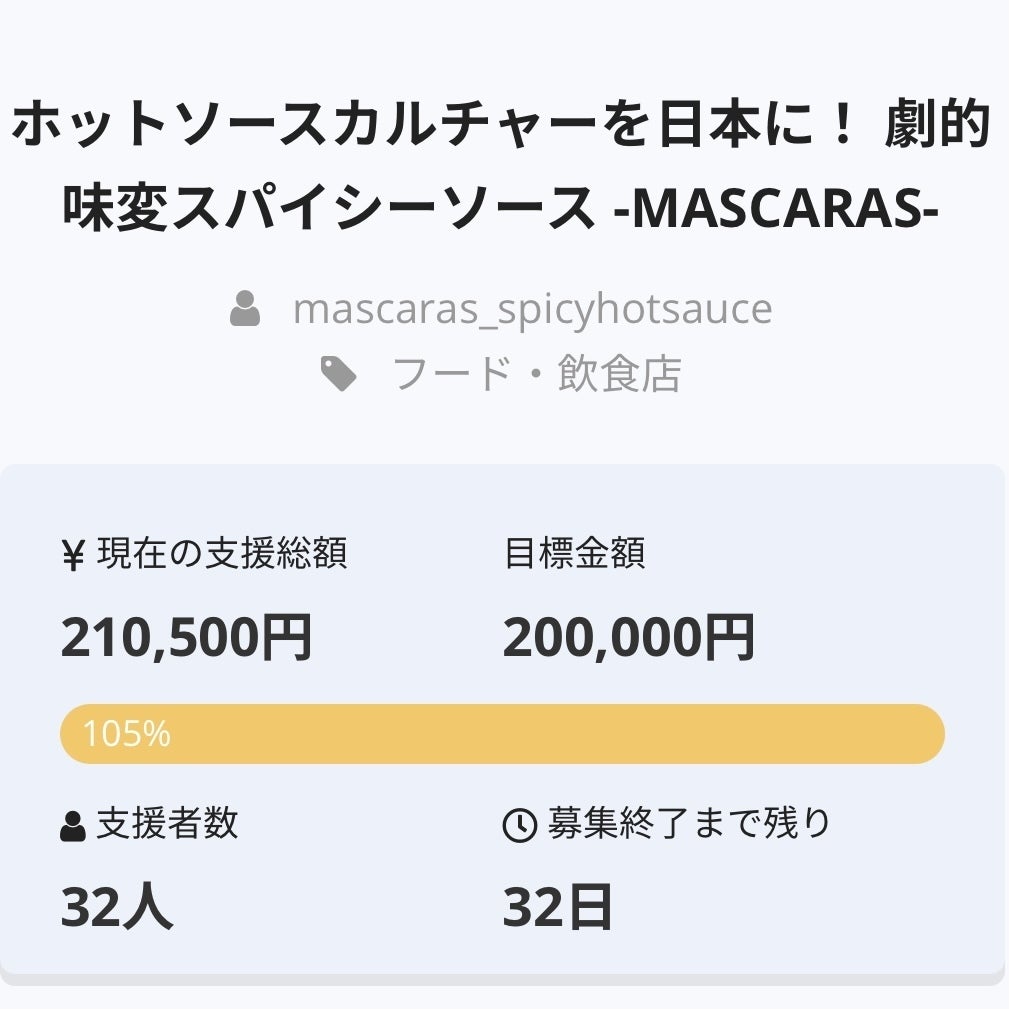 しかし、もっと色々な方に知ってもらうにはどうすればいいのか?もし大量生産するにあたって同じ味を作れるかどうか?コストなど合うか?様々な悩みもありましたが、まずは自分の力でできるだけ多くの人たちに届けられるかチャレンジしたいと決意。今回のクラウドファンディングではすべて自家製で製造します。そして支援して頂けた際には大量生産を視野に入れ、マスカラスを更に日本中に届けられる様、挑戦致します!