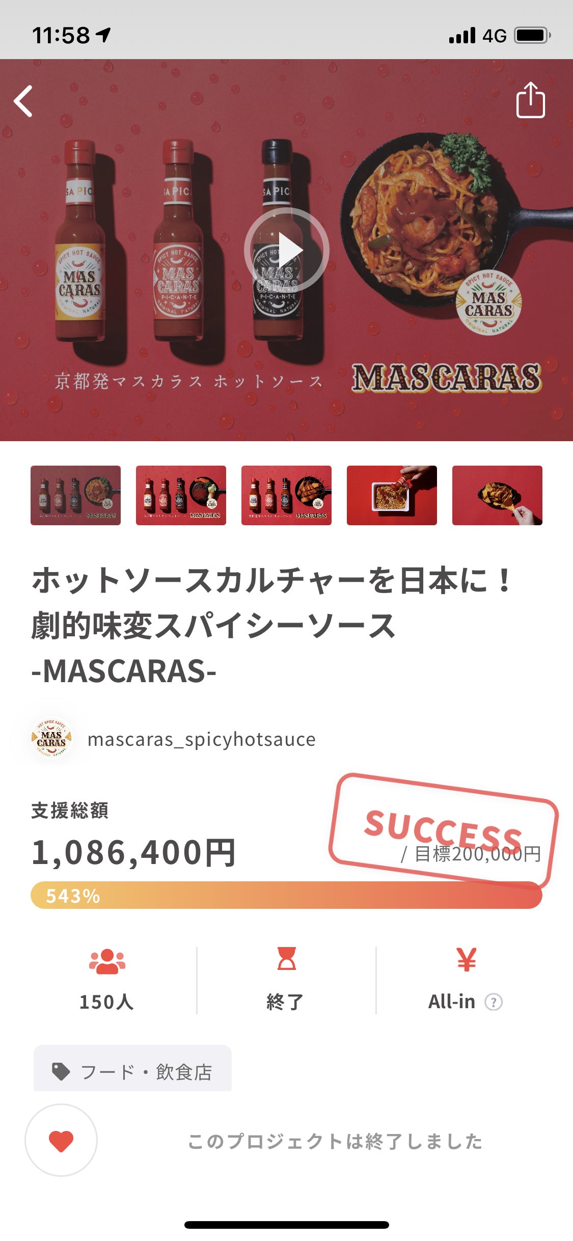 2021/01/31 12:24今回はマスカラスのCHAMPFIREにてのクラウドファンディングのご支援本当にありがとうございました!おかげさまで皆様のご支援で、150名の方から総支援額が1,086400円集まり、目標達成率も543%という結果を残せました。本当にありがとうございます!マスカラスの大量生産の為の準備費用や、より沢山の方に知って頂く為の宣伝広告の為の費用に大切に使わせて頂きます。慣れない中クラウドファンディングという挑戦をさせて頂き、皆様の温かいお心を改めて感じる事が出来、本当に感謝しかございません。。ご支援して頂いた皆様に支援して良かった!と想って頂けるよう更にマスカラスを日本に、世界にまで広げられる様に本気で取り組んで行きます!これからも温かく見守って頂けると幸いです。本当にありがとうございました!!!!!※発送の準備に取り掛かっております、ご支援して頂いた皆様もうしばらくお待ち下さいませ もっと見る