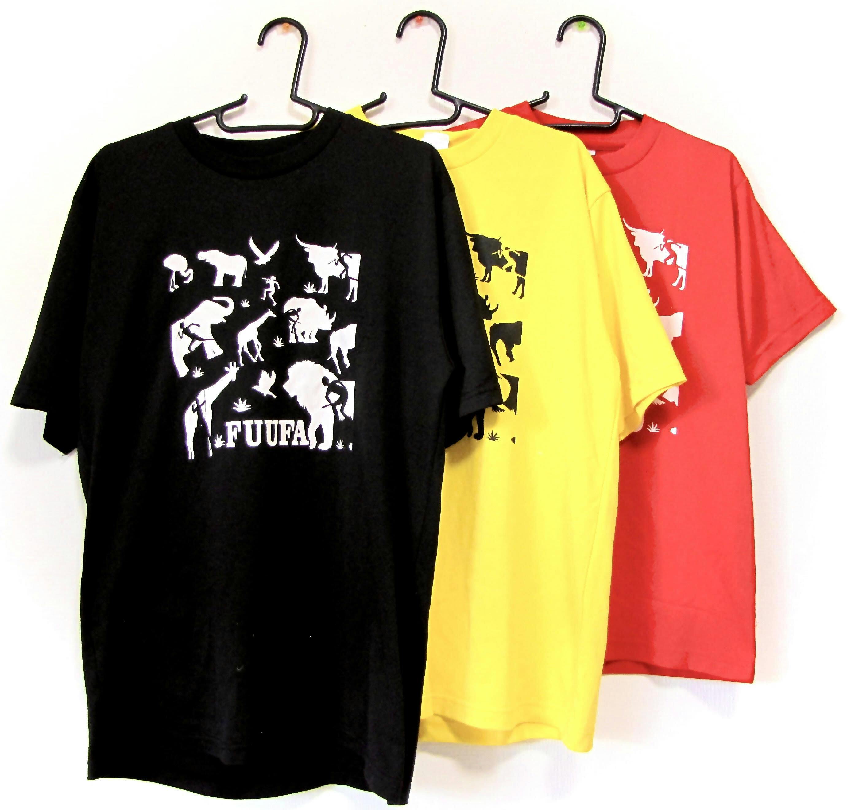 そんなウガンダの国旗に合わせてFUUFAのTシャツの色も3色(黒・黄・赤)で制作させていただいております。