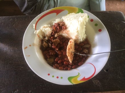 学校の給食ではポショと豆のソースをかけた通称ポショ豆が提供されます。毎日同じ献立らしいです。。。