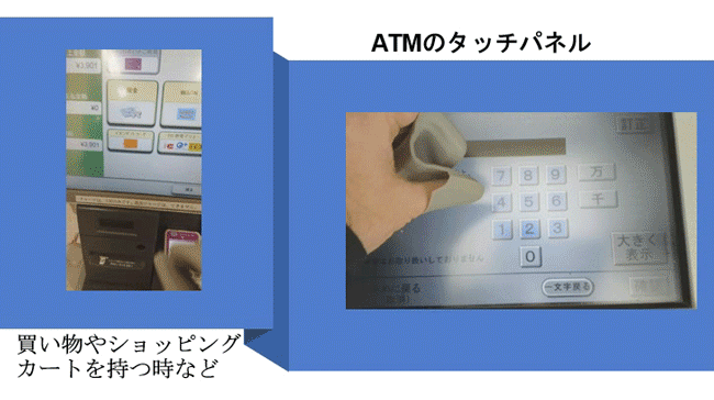 親指のソケット部分は先端のとがったデザインにより、ATM機のボタンやエレベーターのボタンが押しやすくなっています。