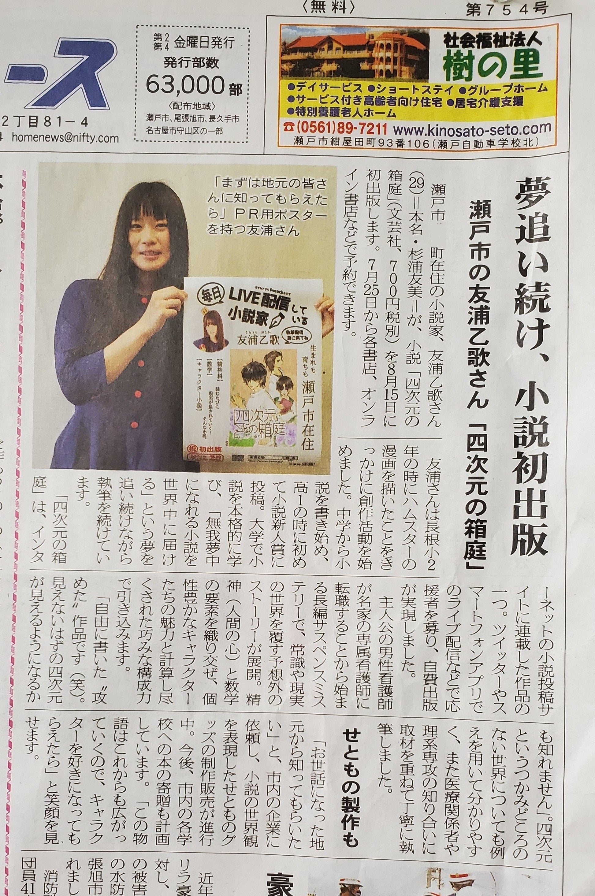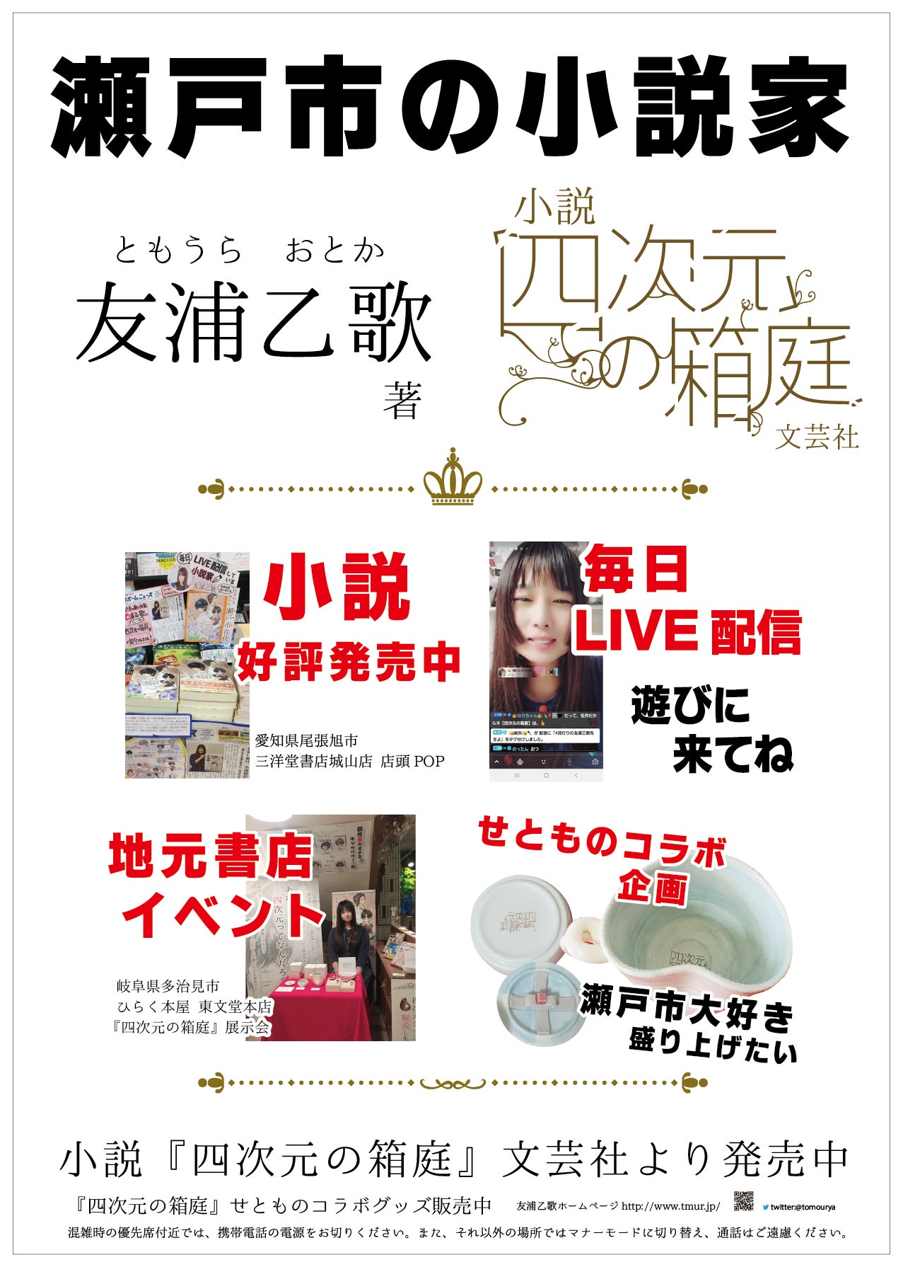 しかし、自費出版なので、宣伝は自分でしなければなりません。友浦はまだまだ無名新人作家なので、まずは生まれ育った(そして今も住んでいる)地元愛知県瀬戸市から発信していこうと考えました。