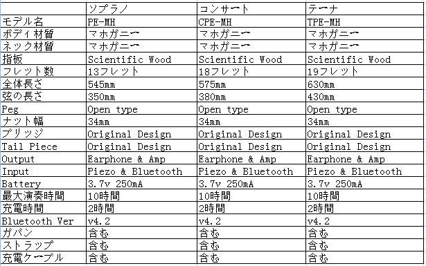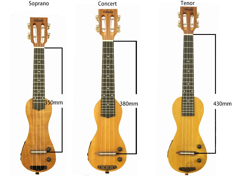 ウクレレは弦の長さに応じてソプラノ、コンサート、テナーサイズが有ります。