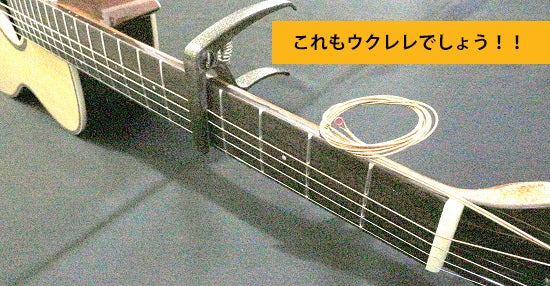 もしギターお持ちでしたら5、6弦を外して5番目のフレットにカポをつければ直ぐウクレレに変身させる事も出来ます。